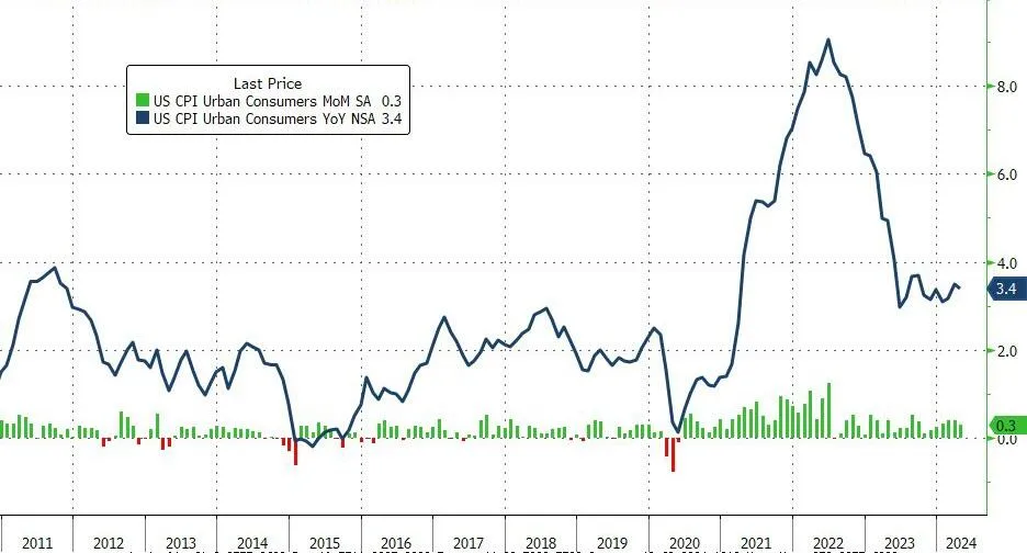 - Also, while not in core, but extremely important for anyone who eats food: grocery prices actually fell -0.2% MoM in April and are running 1.1% YoY according to the Biden BLS. We doubt anyone will believe this number, which was goalseeked so that wage growth would strongly outpace grocery inflation. Relative to wages, grocery prices are back down below their 2019 levels. This, too, won't be believed by anyone.