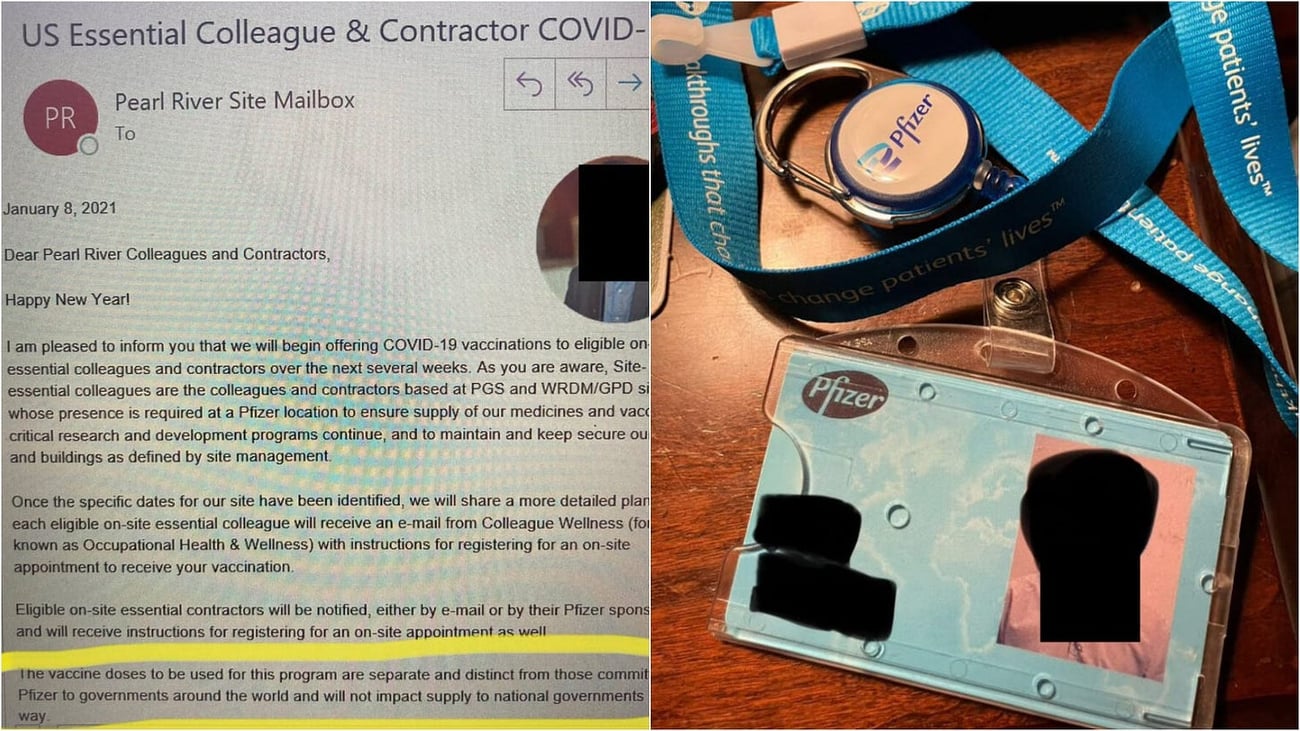 According to the leaked document, site-essential workers were identified to receive these exclusive vaccinations.