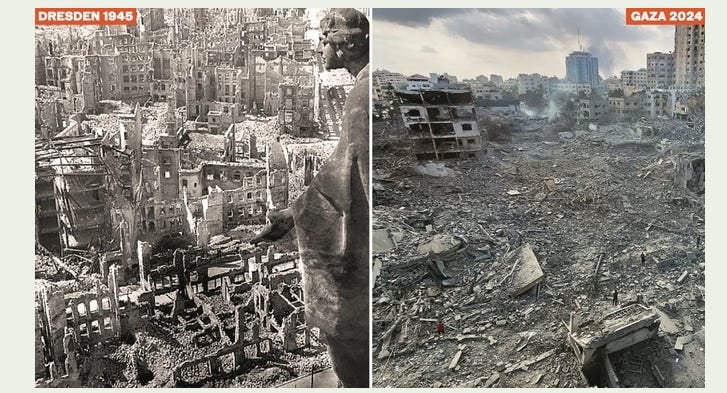 estruction of Gaza compared to controversial bombing of German city at end of Second World War