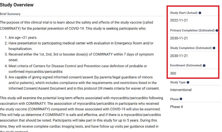 I’ve got something that’s got my blood boiling—and it should get yours too. Pfizer’s just kicked the can down the road again, extending their COVID vaccine-induced myocarditis study by a whopping five years. Yep, you heard that right—it’s now set to wrap up in November 2030, up from the original 2025 finish line. Check the study yourself here: NCT05295290. (Thanks to Dr Clare Craig for highlighting this!)