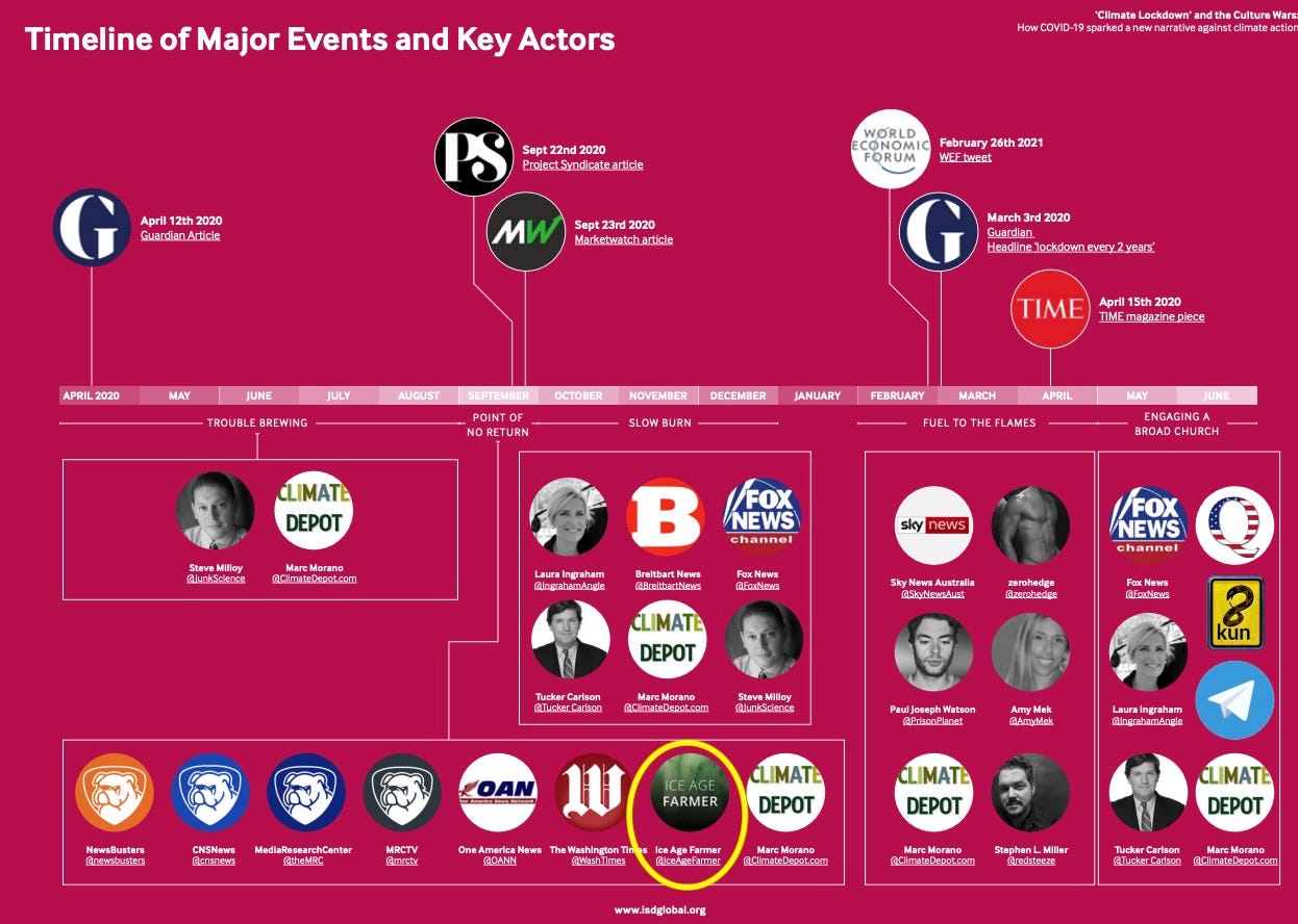 Around the time the Ice Age Farmer channel hit 300,000 subscribers, I was identified as one of the “key actors” in destroying mainstream narratives. The Institute for Strategic Dialog (ISD) is a “think tank” (funding from the Gates Foundation, Soros’ Open Society Foundation, Canada/UK/US, and so on). Their October 2021 report “Climate Lockdown and the Culture Wars” identified Ice Age Farmer as a key actor in this information war: