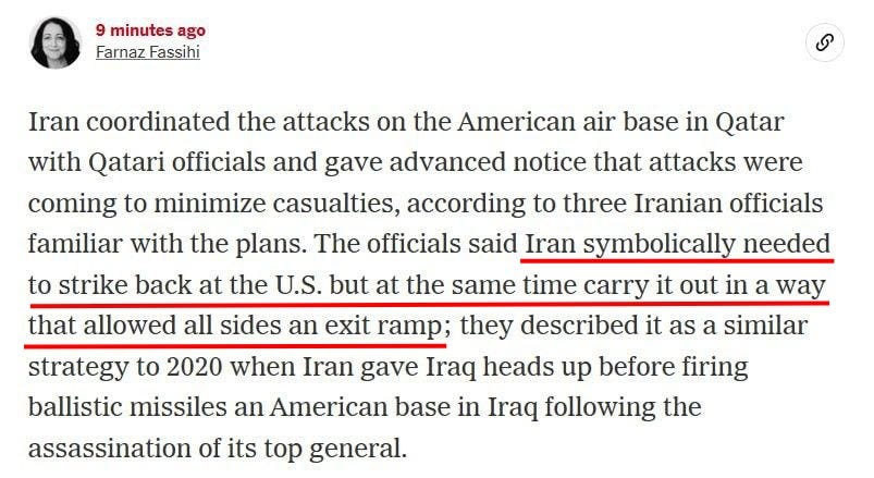 Iran says it used the same amount of missiles against Al-Udeid as the amount of bombs dropped by the U.S. on Fordow (14)