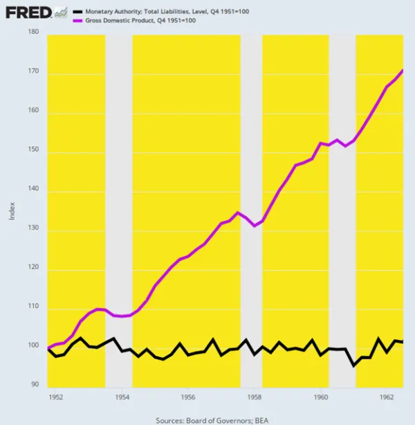 The proof of this proposition starts with the startling historical fact that the post-war US economy did just fine without any interest rate targeting, heavy-duty bond-buying or general macroeconomic management help from the Fed at all. For all practical purposes today’s omnipresent Fed domination of the financial and economic system was non-existent at that point in time.