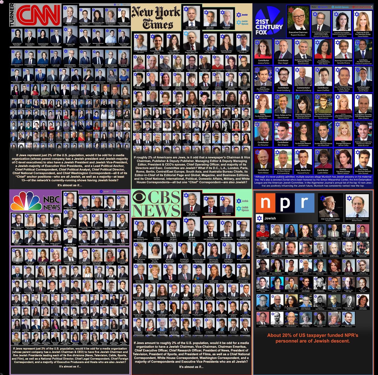 There is complete domination of the media, banking and "government" by inter-generational organized crime, some of whom happen to be Jewish and specialize in banking, technology (Talpiot Program) and media (control-of-perception propaganda, distraction and cultural debasement)."