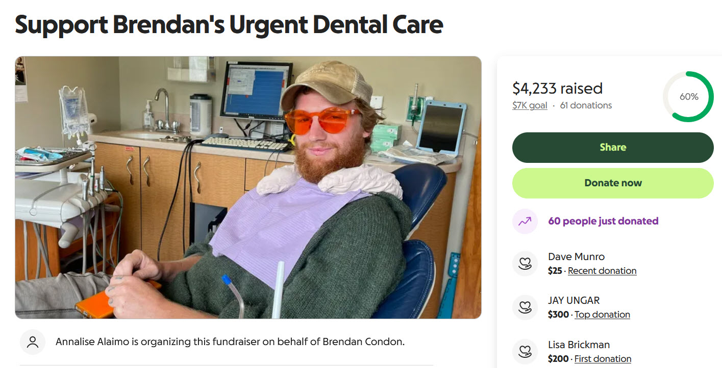 Donate Here: https://www.gofundme.com/f/support-brendans-urgent-dental-care