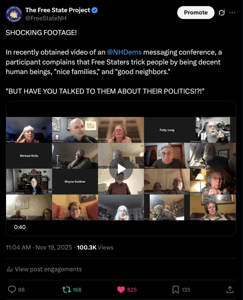 In a recently obtained video of a county-level NH Democrat messaging conference, a local activist has a lot to say about Free Staters.