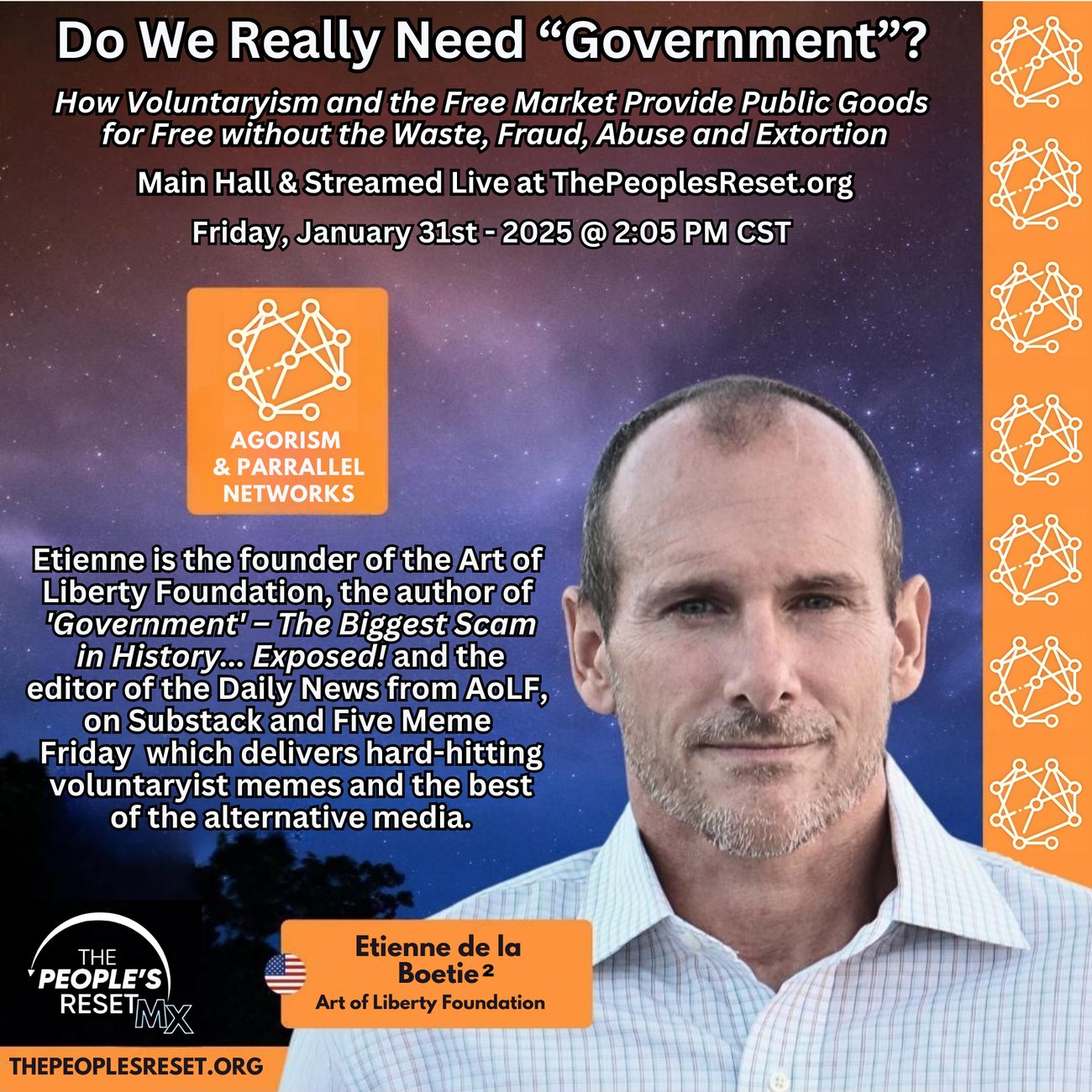 1. Become an Art of Liberty Foundation Sponsor at ArtOfLiberty.org/Sponsor - The best way to support us is to become a sponsor of the foundation. We have some great perks to say Thank You! including copies of "Government" - The Biggest Scam in History... Exposed!, Liberator Flash Drives, Signed Hard Copies, calls with Etienne, and even the ability to have an Art of Liberty Foundation event with tier one Liberty speakers in your City or Town for your friends, family and neighbors!