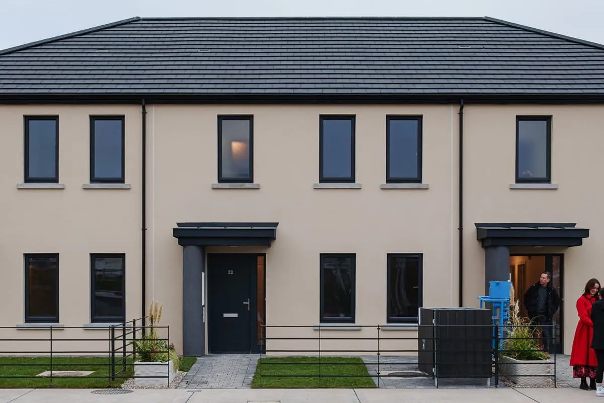 Named Grange Close, the three-unit terraced social housing project is located in Louth, eastern Ireland, and created by HTL.tech. It measures 330 sq m (3,550 sq ft), which is divided into three separate homes with a floorspace of 110 sq m (1,184 sq ft) each, over two floors.