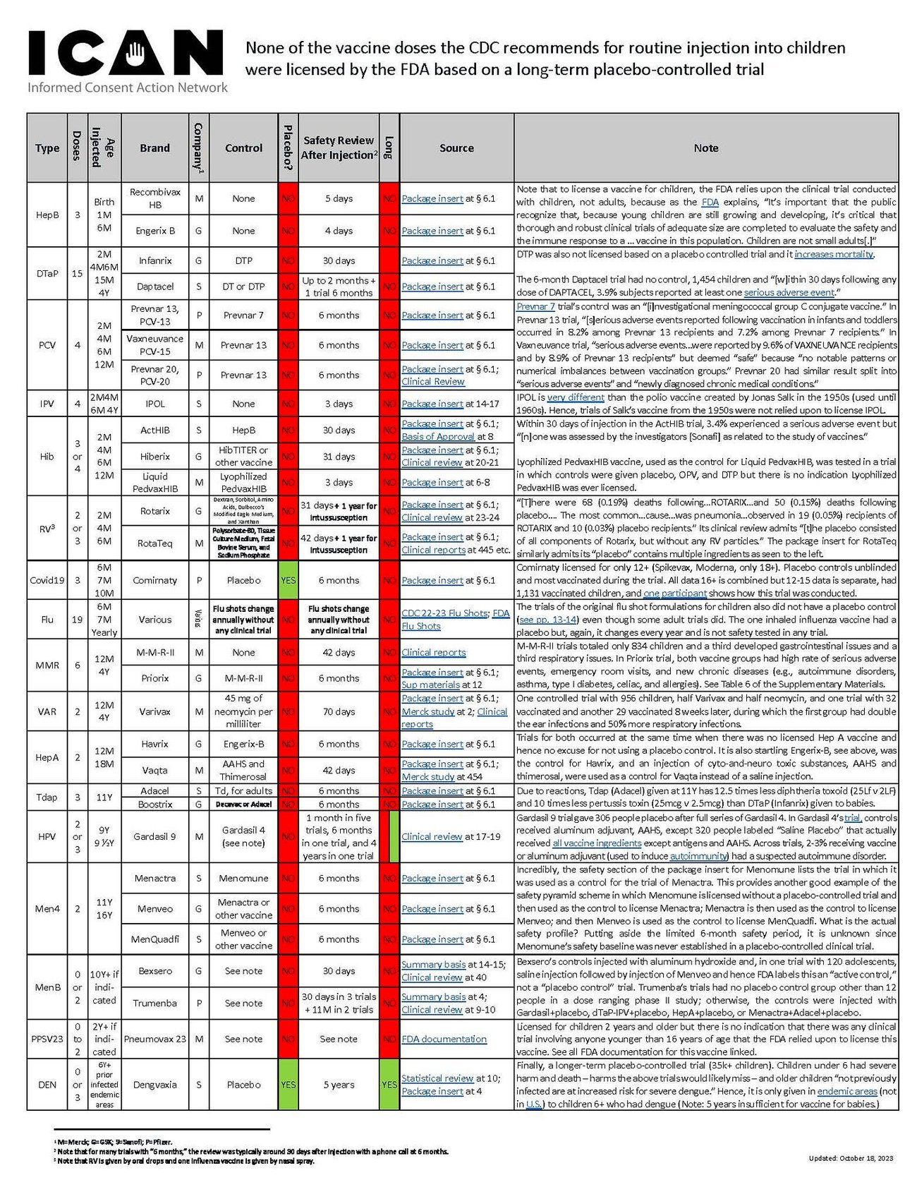 Not a single routine childhood vaccine was licensed based on a long-term placebo-controlled trial. Not one. See the carefully created and fully referenced chart at https://icandecide.org/no-placebo which was compiled by our firm with funding from the Informed Consent Action Network (ICAN).