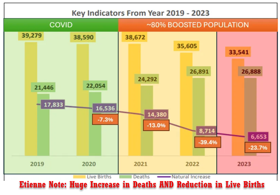 Singapore Officially Releases Annual Birth and Death Report 2023: Post Vax Deaths Continues to Erupt and Stunning Declining Births