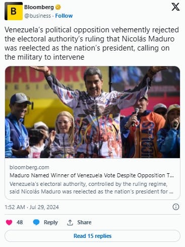 The opposition is further calling on the military to turn against Maduro and back the 'rightful' victory of Gonzalez.