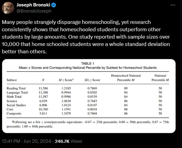 In one study of over 10,000 students, homeschooled students outperformed the national average by around one standard deviation in many areas, such as math, science, reading, and social sciences.