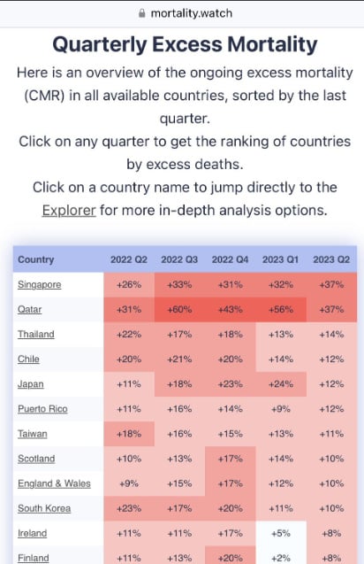 Etienne Note: More and more evidence comes out every single day that the "vaccines" are causing massive death and disease that the organized crime monopoly media is ignoring. This week it is Singapore who was the most vaccinated place on the planet and now they are seeing massive increases in both excess mortality over previous years AND massive reductions in their live births pointing to reproductive issues with the "vaccines." These are official "government" numbers. Different countries... All showing the same massive increases in deaths and reductions in births... Sure smells like eugenics to me... This is what you are being distracted away from he staged assassination attempts, transgender boxers, and the satanic Olympic opening ceremonies...