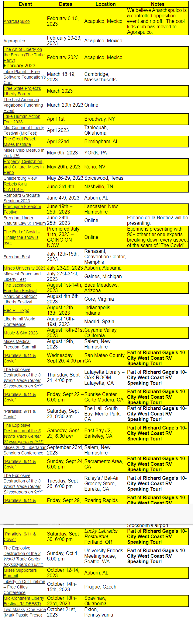 Upcoming Liberty Events from the Art of Liberty Foundation Events Calendar