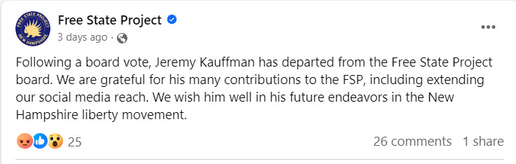 Finally, are you disillusioned by the FSP but still want to help make a difference in New Hampshire? Our Pre-State Project is quietly distributing hundreds of books and flash drives in New Hampshire. We do as many or more podcasts about the FSP than Jeremy Kaufmann without promoting "vaccines" at all ;-). Find out more at: ArtOfLiberty.org/PSP