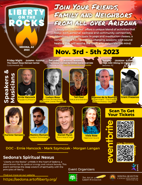 Dear Subscribers, this weekend on Nov 3rd-5th, we will be hosting a conference in Sedona, Arizona entitled: Liberty on the Rocks. We hope you can join us in-person or on live stream to learn about SOLUTIONS and how to create or accelerate a Liberty group in your town. Sedona.ArtOfLiberty.org