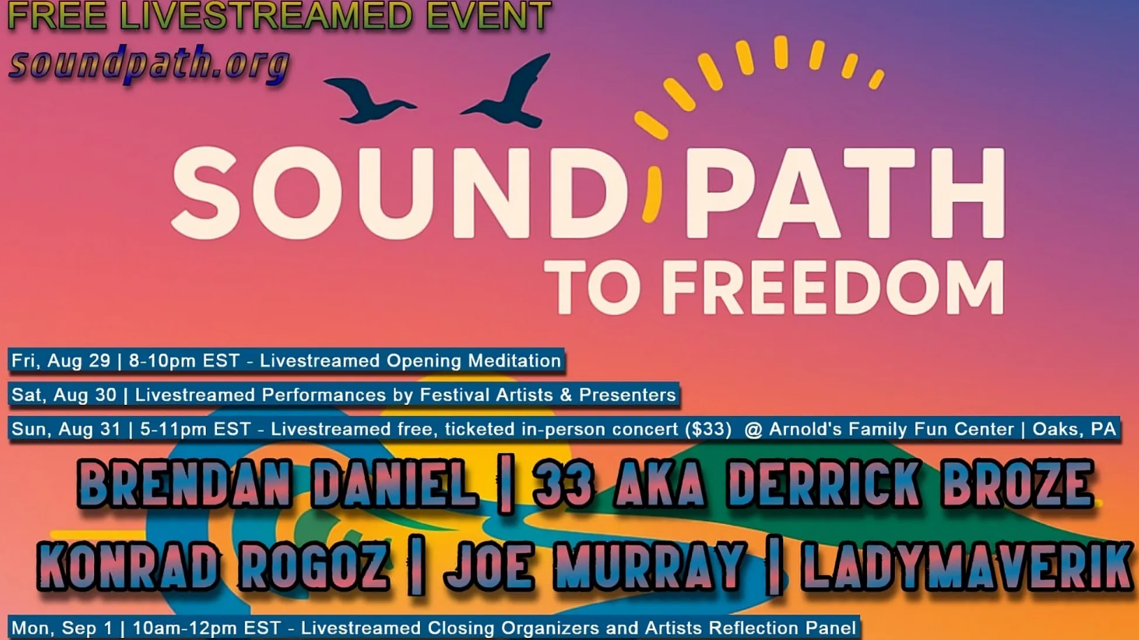 Sound Path to Freedom Festival – Aug 29th-31st Oaks, PA
