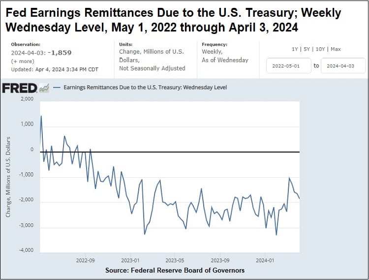 The Fed’s unprecedented experiments with years of ZIRP (Zero Interest Rate Policy) and QE (Quantitative Easing), where it bought up trillions of dollars of low-yielding U.S. Treasuries and agency Mortgage-Backed Securities (MBS) and quietly parked them on its balance sheet, are now posing a threat to the Fed’s flexibility in conducting monetary policy. (Since 2008, the Fed’s concept of conducting monetary policy has come to enshrine serial Wall Street mega bank bailouts as a regular part of its monetary policy. Large and growing cash losses at the Fed may seriously crimp such future bailouts.)