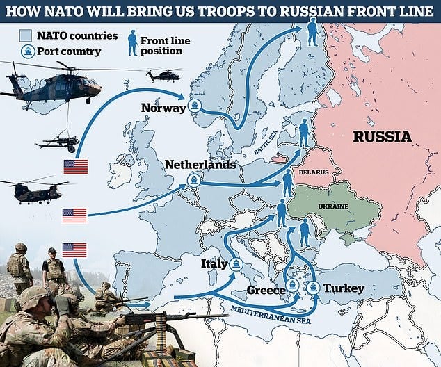 Revealed - NATO plan to get US troops to the front line to fight RUSSIA: Alliance prepares for rapid deployment of American soldiers amid fears Moscow is plotting major war with Europe