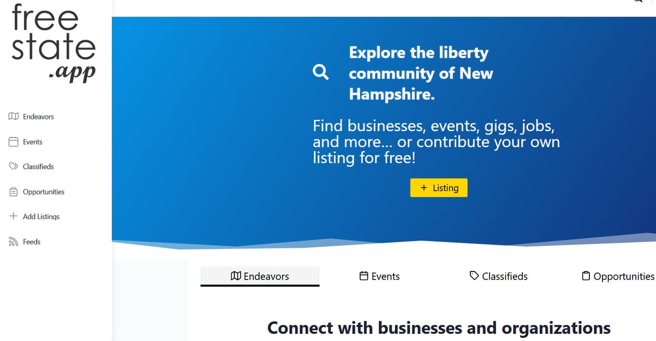 One of the cool things about the Free State Project is that there are so many entrepreneurs and endeavors going on in the state that you need an App to keep track of them all! Where there is a need in the market, there is a Free State Project entrepreneur! The Free State App is a state-wide directory and classified ad platform for everything from events to job opportunities in the state. You can check out the Art of Liberty Foundation's listing for our Pre-State Project and classified ads for our Pop Up Guerrilla Bookstore, flag ship book "Government" - The Biggest Scam in History.. Exposed! and Liberator flash drive as examples.