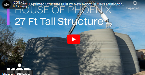On March 12, 2024, ICON unveiled Phoenix, its new multi-story robotic construction system which introduces the capability of printing an entire building enclosure including foundations and roof structures. The first engineering prototype of Phoenix days before had completed a 27-foot-tall architectural demonstration structure, now on display in Austin, TX.