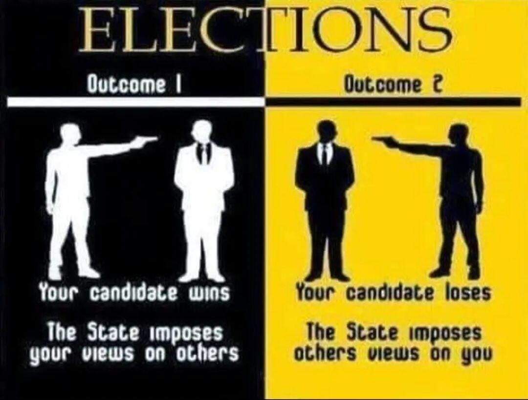 This year, Don’t “Vote Harder” to Rob Your Neighbors! in fake elections! Discover the biggest secret in American politics: