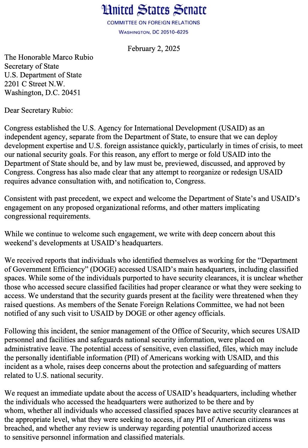 10 Democrat Senators make demands regarding USAID that they have no right to