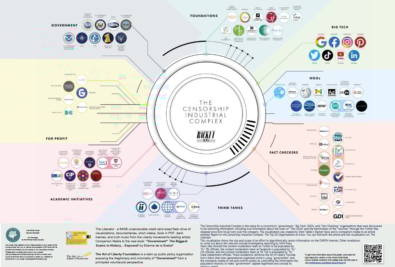 Art of Liberty has been exposing the organized crime government’s global internet censorship efforts for years. Here is a White Rose Mucho Grande Poster detailing the network that Benz is describing.