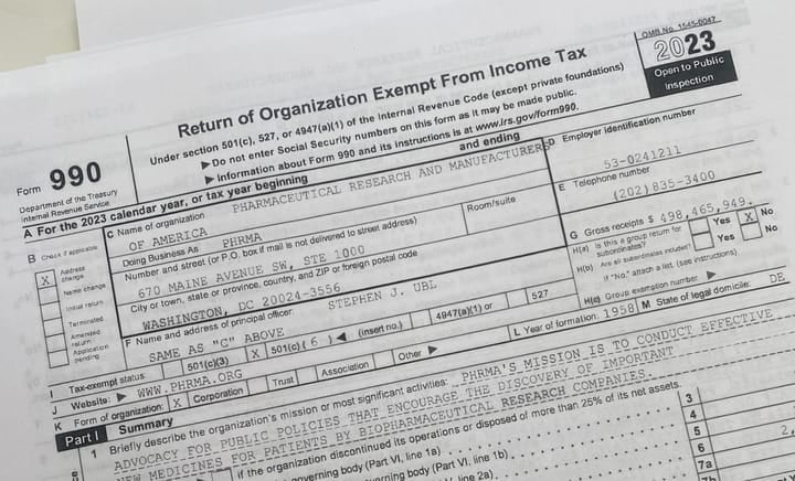 In the Pharmaceutical Research & Manufacturers of America (PhRMA) tax filing for the 2023 calendar year, which the group delivered to Sludge by mail, one of the group’s largest contributions was $3.5 million given to the American Action Network (AAN), the conservative dark money advocacy group that the previous year spent millions on ads torching Democrat-proposed drug price reforms.