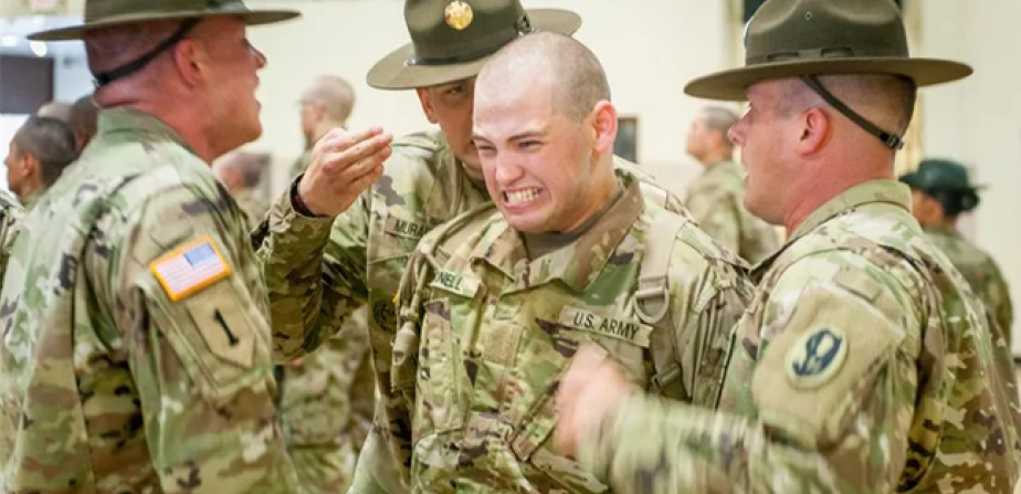 During “basic training,” military recruits are forced to undergo a variety of unethically manipulative techniques, including verbal and physical abuse, excessive stress, degradation and humiliation, sleep deprivation, isolation and the artificial conformity of the uni-form (single form) and shaved heads replacing individual physical appearance with a group appearance further reinforcing the artificially created group dynamic. The services are notorious for inciting peer pressure and collective punishment, including “blanket parties” where the non-conforming are beaten with improvised flails (soap bars or locks in a towel/sock). The Marines take the doors off the stalls in the bathroom so recruits can’t have even a moment of privacy to reflect on what is being done to them or the fact that they are committing to murder whoever the church leadership tells them to. They are injected with debilitating “vaccines” and forced to sing march cadences that normalize murder, among other techniques.