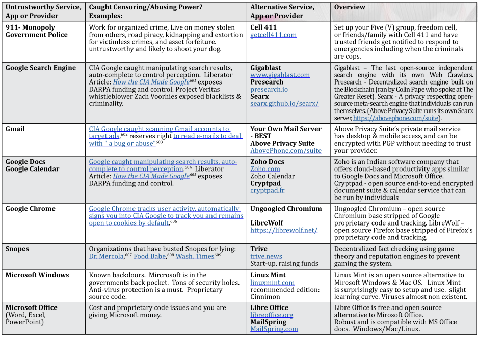 IMPORTANT: These recommendations for trusted and secure alternatives are a compilation of suggestions from the author and members of the Art of Liberty Foundation community. The author(s) are unable to vouch 100% for the security of even open source projects because we currently lack the resources to investigate/verify the code bases, but we could if funding developed (Serious Inquires Only). We are publicly and transparently crowd-sourcing feedback on these solutions and recommendations from our community. Please contribute in the comments below.