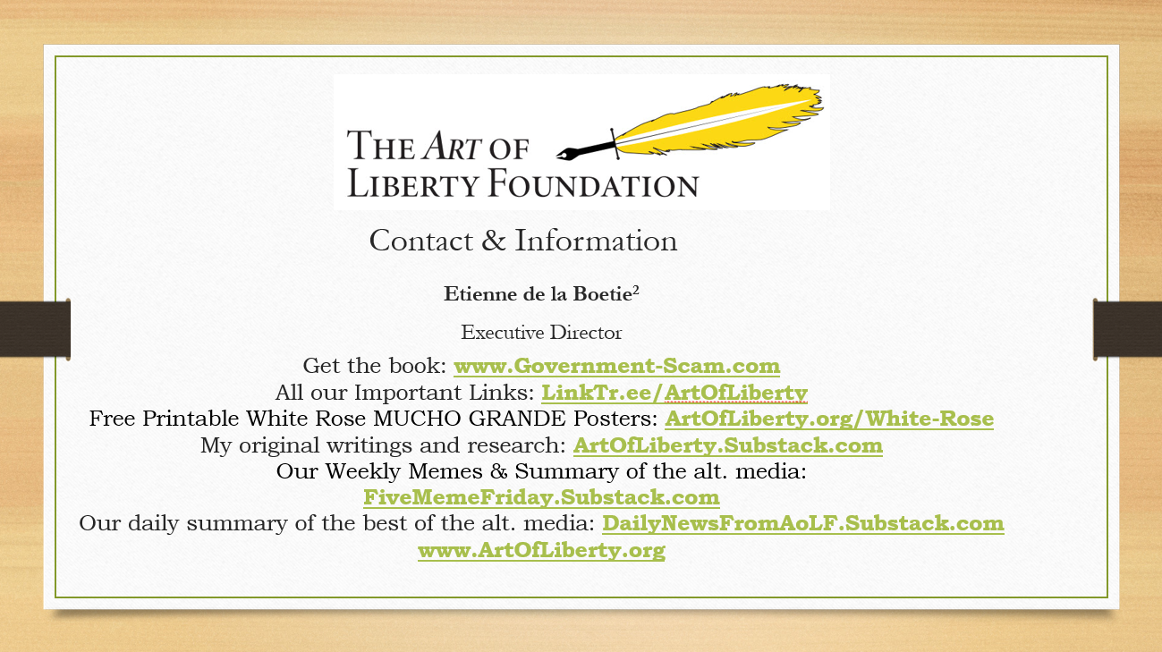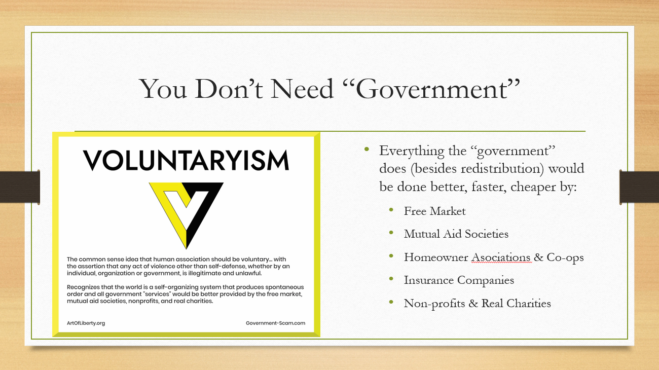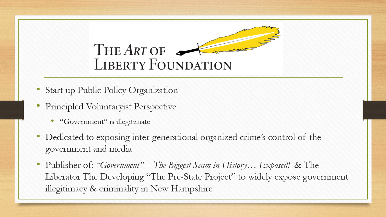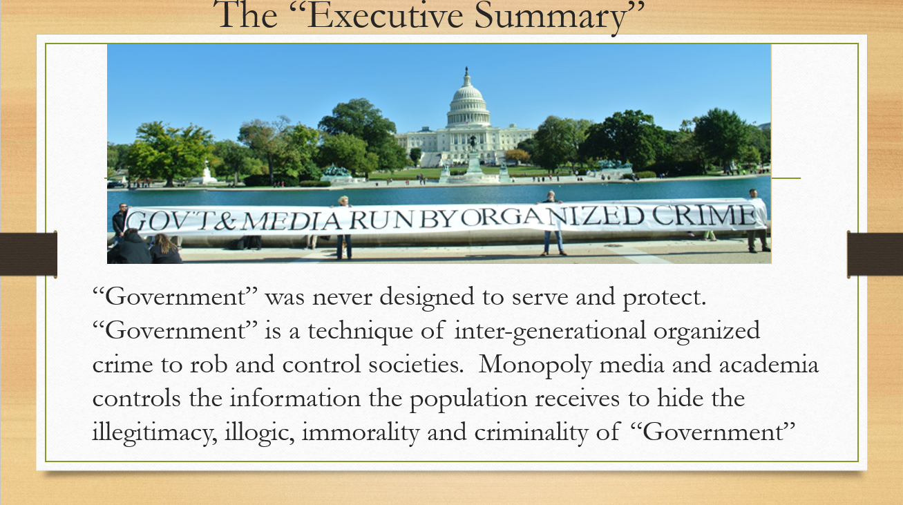 Here is a short 30-minute speech I gave at the Rebels for a Cause conference in Nashville last week. It is a great introduction to my work and the scam of “government.” Slides below