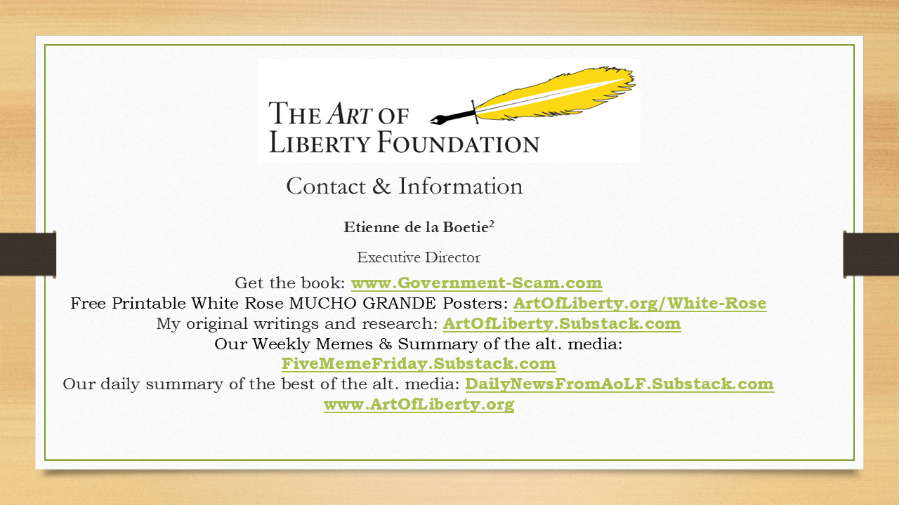 Here’s all my contact information, and I wanted to just say you’ll be able to find this and all the slides and all of my original writings at ArtOfLiberty.org and ArtOfLiberty.Substack.com. That’s it. I want to thank everybody for your kind attention.