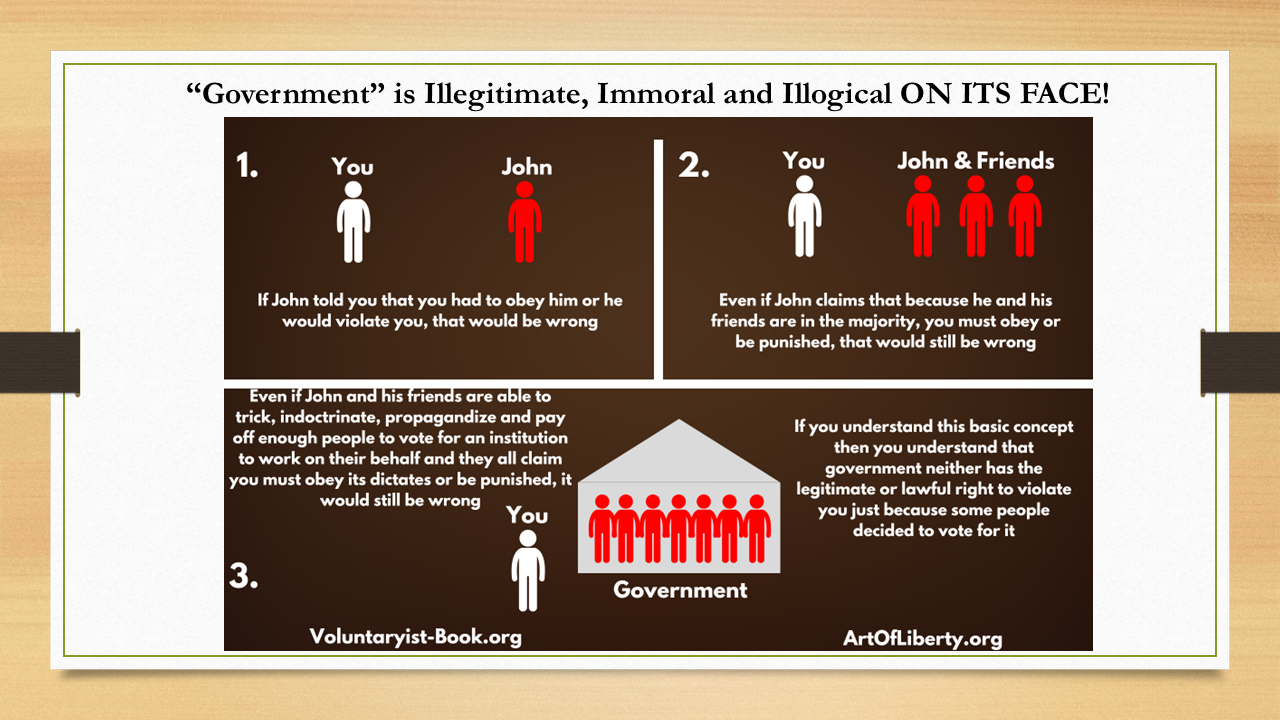 And if you can understand this basic concept, then you understand why government neither has the legitimate nor lawful right to violate you just because some people decide to vote for it in obviously rigged elections.