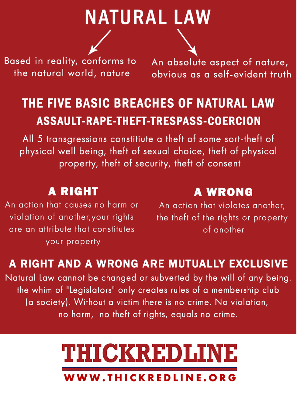 In natural law, there are essentially five main transgressions (Assault, Rape, Theft, Trespass and Coercion (murder is the theft of life), and they are all obviously “Wrongs” in there is a victim who has been harmed or whose rights have been violated. Anything that's not a “Wrong” is a “Right.” If you're not hurting anyone else, you have the right to be left alone and not be robbed and mulct by politicians catering to the majority to get elected.