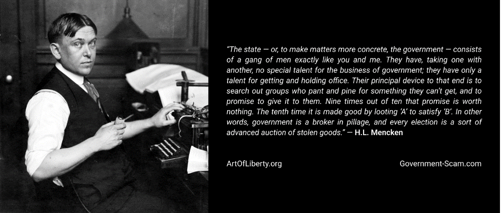 In my book “Government” – The Biggest Scam in History… Exposed! I break down how “Government” was never intended to protect life, liberty and property. It is a technique for robbing and controlling populations who have been indoctrinated into the belief system in mandatory schools run by the “Government,” where the belief in the legitimacy, desirability and necessity of having a “government” is instilled before kids are old enough to evaluate the logic and morality of the claim. The artificial legitimacy of the belief system is then reinforced by Hollywood, monopoly media, and propaganda, where most people never encounter the truth about “the system.” Essentially, the inter-generational organized crime organizations who tax-farm the population using “government” have an informational advantage over their tax slaves and trick them into going along with something that isn’t in their interest.