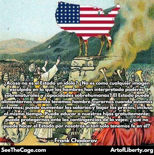 Pide una copia individual por $4.95 aquí: https://artofliberty.org/product/the-idolatry-of-statism/