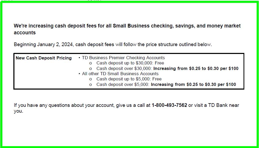 Deposit $100K and TD Bank is going to charge you $300? WTF
