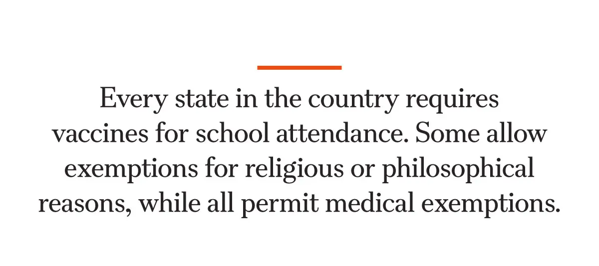 Every state in the country requires vaccines for school attendance. Some allow exemptions for religious or philosophical reasons, while all permit medical exemptions.