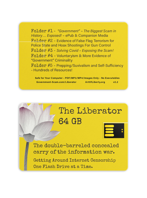 Please support our efforts by purchasing a copy of “Government” – The Biggest Scam in History… Exposed! and our wallet-sized flash drive of Freedom: The Liberator at our online store. If able, please consider donating through cryptocurrency or credit card here: ArtOfLiberty.org/Sponsor.