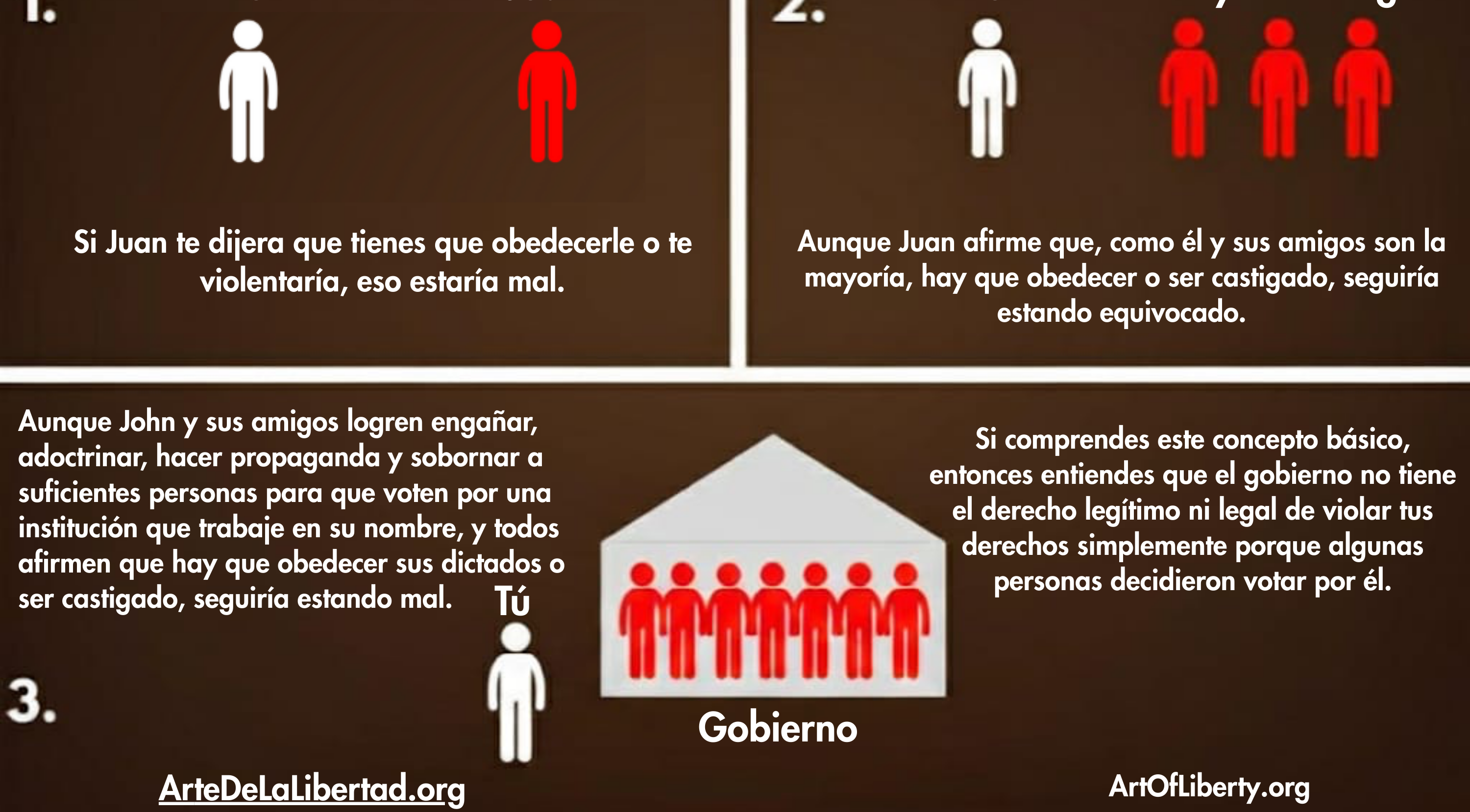Creemos que es la filosofía política más censurada del mundo porque expone la ilegitimidad y criminalidad del “gobierno” que utiliza la violencia, la extorsión y técnicas de manipulación poco éticas para engañar a la población y lograr que se una a una clase dominante que tiene derechos que otras personas no tienen.