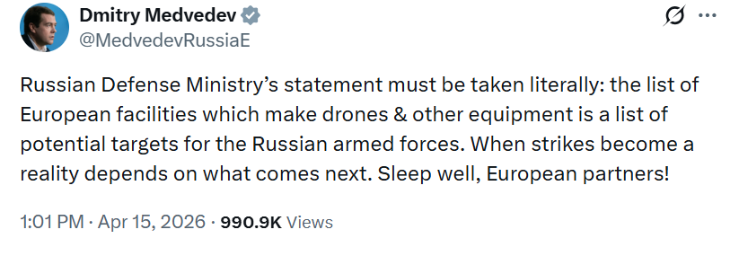 “This can occur in two cases: either Western air defense systems are highly ineffective, as has already been seen during the developments in the Middle East, or the states in question are deliberately providing their airspace, that is, acting as direct accomplices in aggression against Russia. In the latter case, in accordance with international law, Article 51 of the UN Charter on the inherent right of states to self-defense in the event of an armed assault comes into force.”