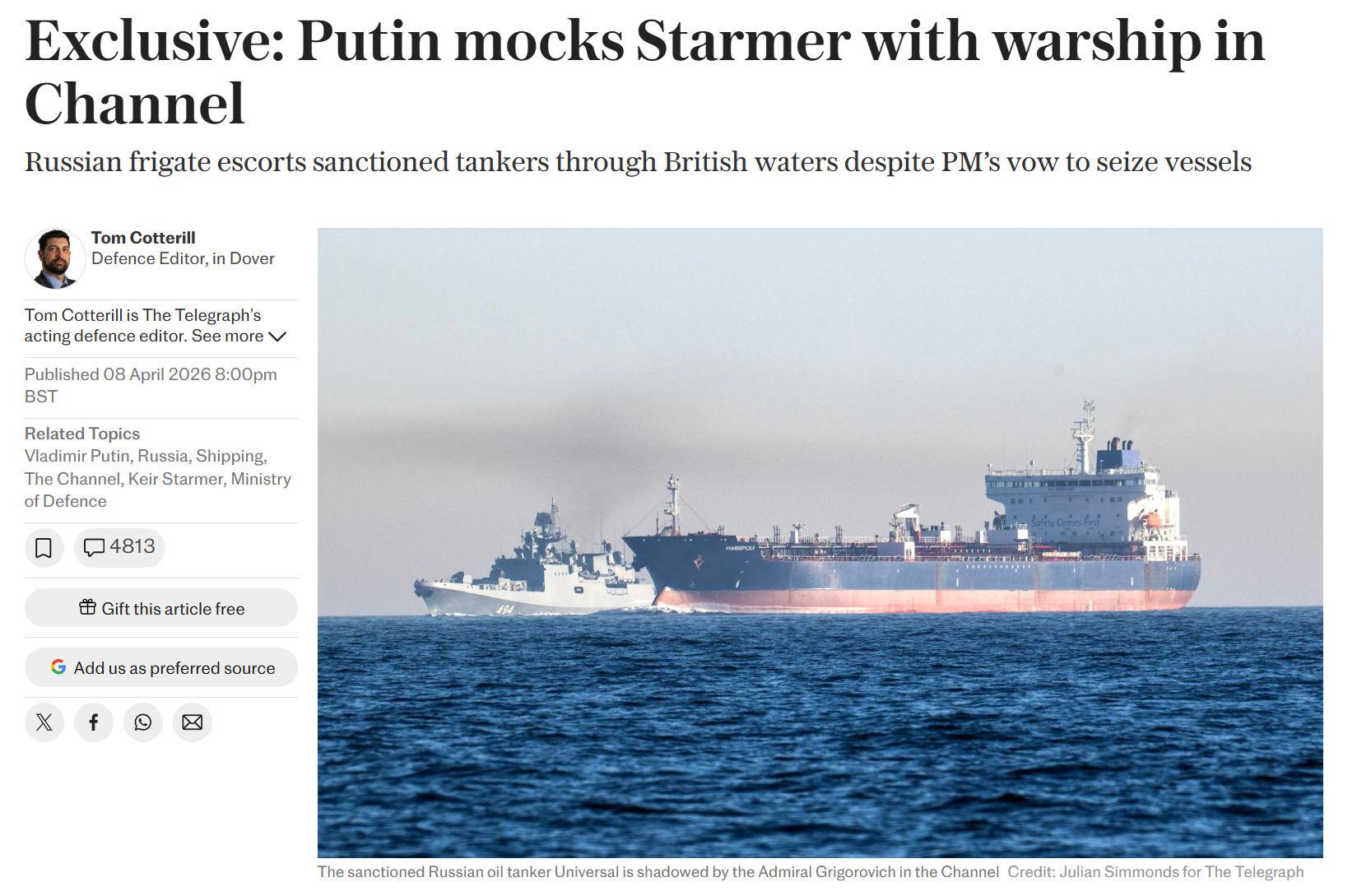 It has also been seen last week that Russia began escorting its “shadow fleet” oil tankers with warships through the English Channel, which was characterized as some kind of ‘grave provocation’ against the UK and NATO.