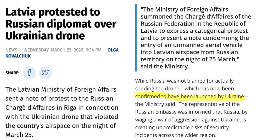 Read the below—the Latvian ministry literally admitted the drone that crashed on its territory was Ukrainian, but proceeded to blame Russia anyway: