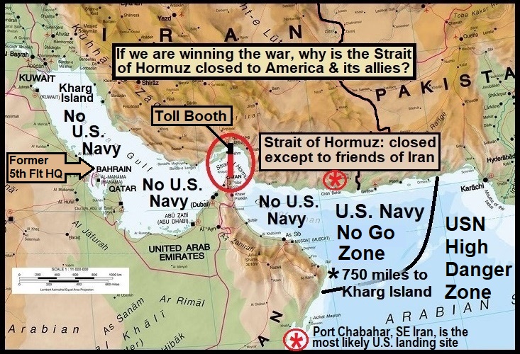 All of Trump’s bravado about forcing open the Strait of Hormuz, and blockading ships exiting the Persian Gulf must be seen in light of our fear of approaching Iran.