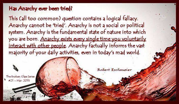 - Anarchy (REAL Freedom) is the default position. Man is born free, but everywhere we are in chains. Anarchy isn’t something that we should “try”… “Government” is the experiment that has failed! The Consitution hasn’t been able to limit government at all. It has failed to protect even the basic natural law rights specified in the Bill of Rights. We must abandon “government” and have a peaceful and orderly transition back to free markets and REAL freedom!