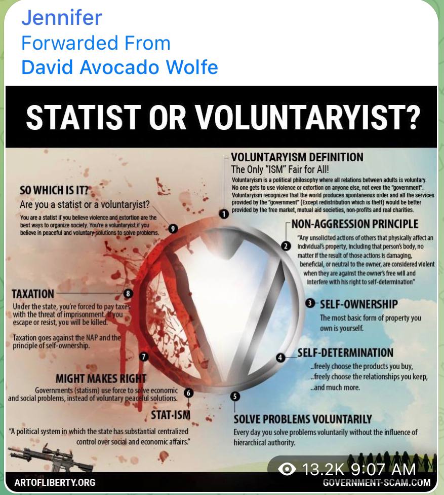 I like to call Voluntaryism the only “ISM” that is fair for everyone. No one gets the “ring of power” because there isn’t a ring of power! No one has rights that others don’t. No one is exempt from morality… Not even “government”! The only political option that keeps you on the right side of the 10 Commandments, Natural Law, The Golden Rule, Karma and the Good Lord!