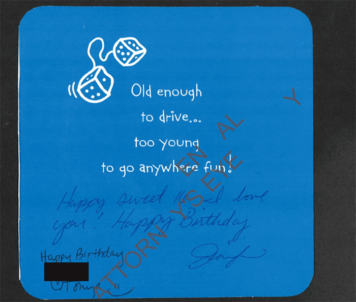 Glued in one journal are cards celebrating the girl’s 16th birthday. She was already under Epstein’s control for a while at this point.