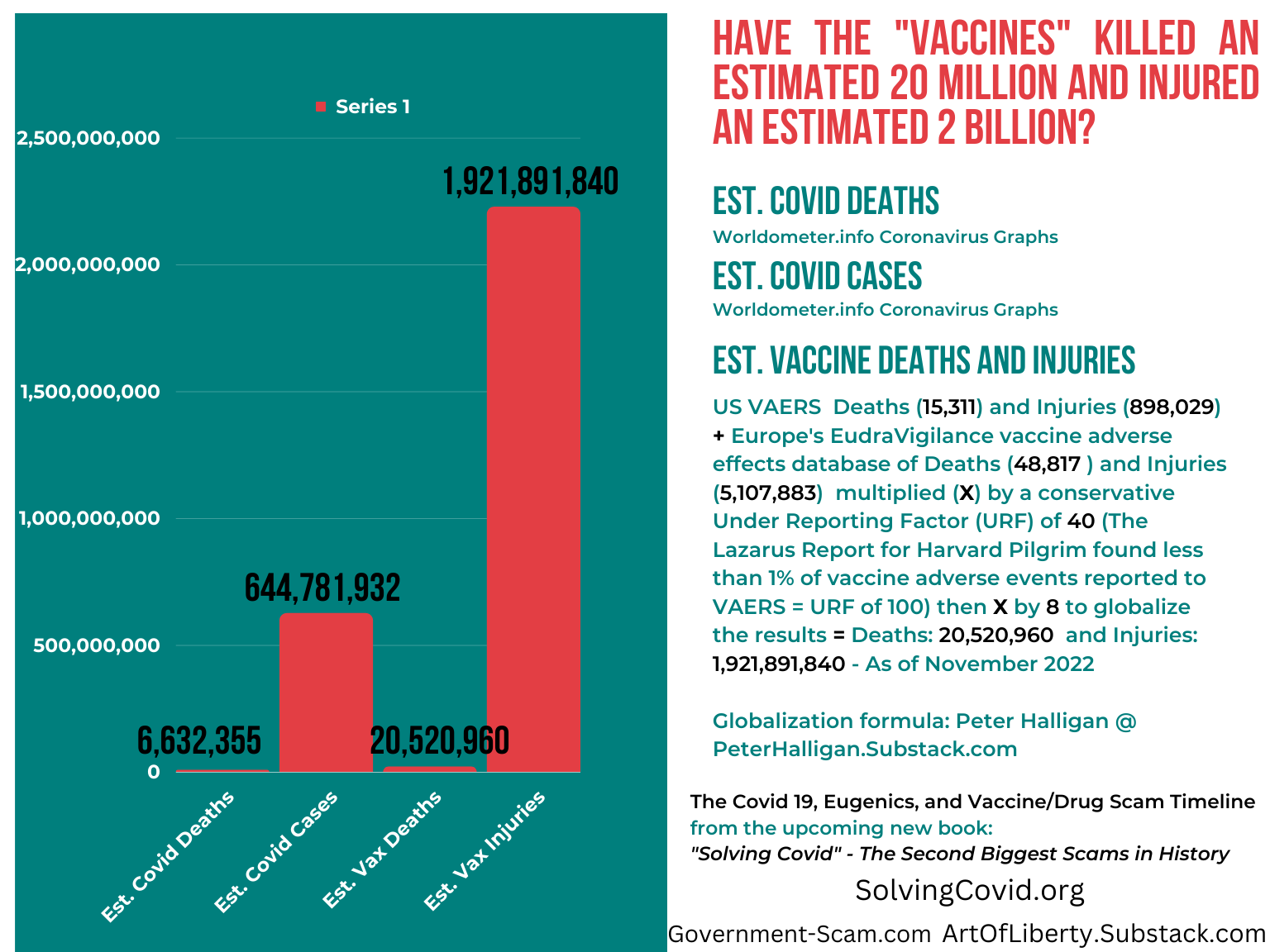 First, the documentary, like rat poison, is overwhelmingly good food… otherwise, the rats wouldn’t consume it. It is bringing the uncomfortable truth of vaccine-related deaths and adverse events into the light BUT doing it in a way that will discredit the information with liberals and intellectuals. Based on simply extrapolating the data from the world’s leading vaccine adverse effects reporting systems (VAERS in the US, EudraVigilance in Europe, the UK’s Yellow Card, and Australia’s DAER system there are an estimated 20 million dead from the “vaccines” vs. less than 7 million dead from “The Covid”