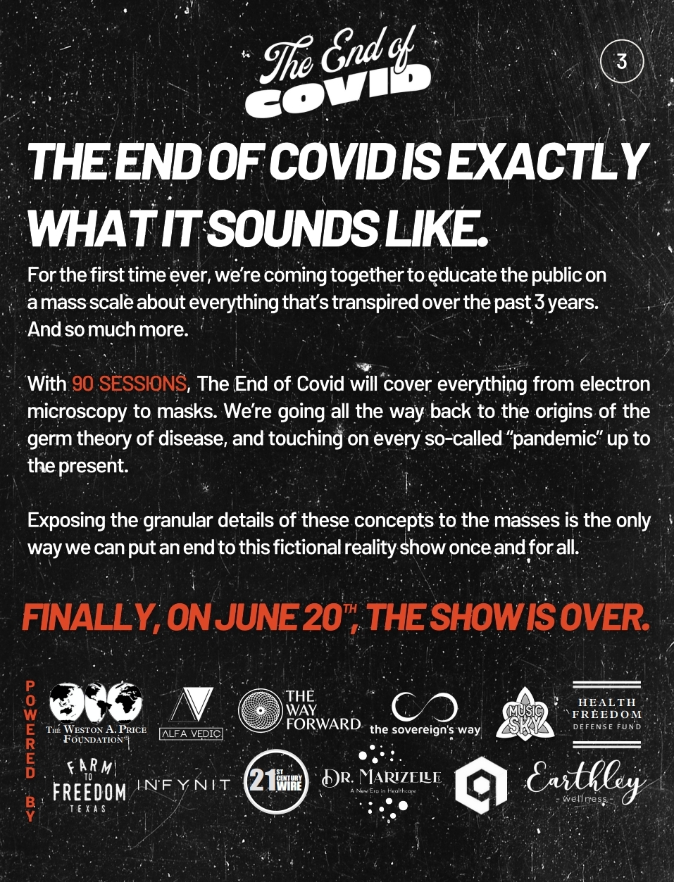In a little under two weeks, every aspect of the scam of Covid will be exposed with the launch of The End of Covid, a 90-part virtual educational summit beginning on July 11th, 2023. I am honored to participate in this massive undertaking masterfully spearheaded by Alec Zeck. This massive event brings together doctors, scientists, investigative journalists, and experts that will break down every aspect of how organized crime pulled off the 3rd biggest scam in history (after the Scams of “Government” and “Virology”)